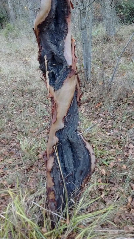 While near Port Townsend last week working on a multi-year woodlot thinning project, I pondered the trouble of our beautiful madrones throughout the Northwest. We all know the black scars on tree trunks. These are the characteristic signs of a fungus termed Fusicoccum aesculi or madrone canker which has been ravaging our thin bark evergreens…for the past 3 decades. The tree has no obvious defense except it’s thin bark, and this peels in the autumn months. Could this be it’s Achilles Heel?